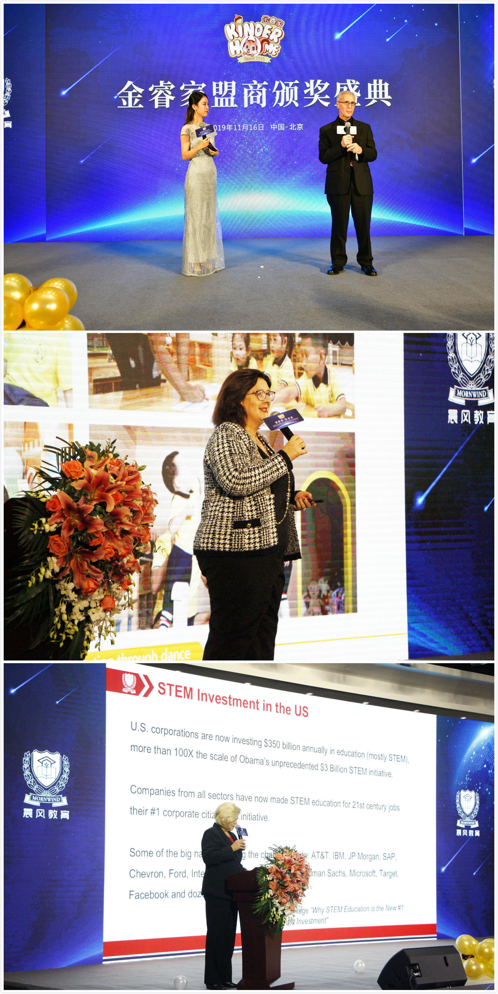 庆典现场,金睿家全球CEO Richard Maltese向晨风教育集团副总裁、金睿家大中华区联合创始人Mary女士,颁发了金睿家全球2019年度最佳经营奖,表彰金睿家大中华区在这一年里为中国早期教育事业的发展做出的巨大贡献。