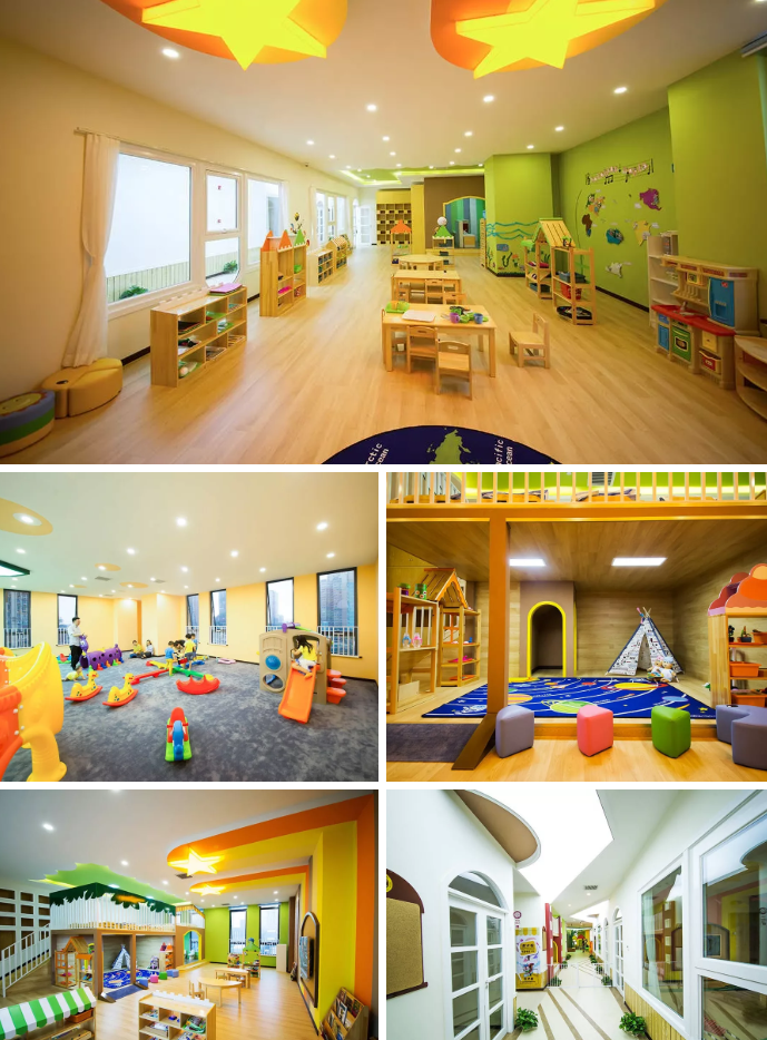 大部分早教中心是在商场内,只有很少的教室可以看到自然光。那么光源以及通风就显得尤为重要。以金睿家为例,专业的早教托育中心,墙面色彩搭配以及教室灯光都是非常柔和舒服的。如果一进去就感觉不舒服,那不用怀疑,小朋友在里面上课的效果肯定受影响。