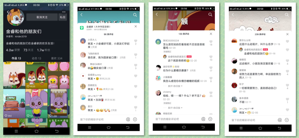 截止目前,“金睿和他的朋友们”抖音平台获赞4万,粉丝数量达到1.7万。疫情期间,小金睿为我们讲述了网课、宅家日记等多重故事,我们希望通过IP形象所倡导的教育内容,能更深刻的传递给孩子们,帮助父母科学地育儿育几。