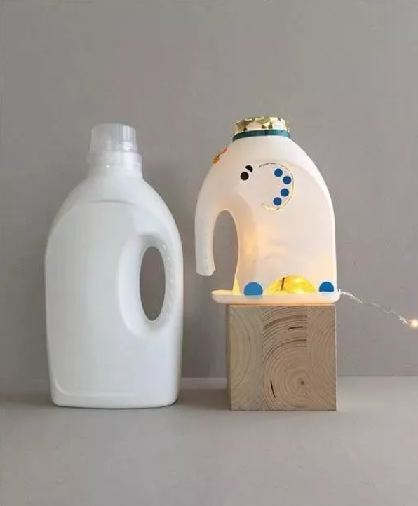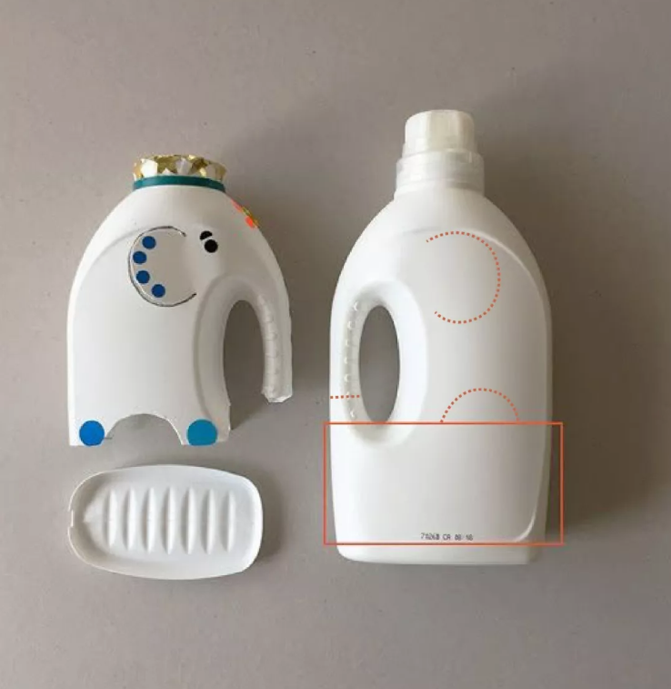 想制作一头活灵活现的“大象”?别着急,用一个废弃的洗衣液瓶子,就可以做到。首先我们沿边切掉下半部分,在贴上一些精美的装饰物,就可以一键搞定!